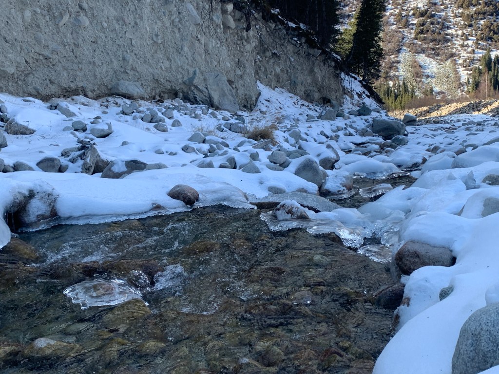 The next day promised a stark contrast, as I embarked on a guided tour to Ala Archa National Park with Donnie, a Scottish actuary, and Nurbek, our expert Kyrgyz guide. The journey to the park was scenic, with the mountains looming ever closer. On arrival, we were greeted by a winter wonderland, the park’s rugged terrain blanketed in pristine snow. Trudging through the snow-covered paths, the landscape around us was awe-inspiring, with the mountains themselves cloaked in white. Our guide, Nurbek, skillfully led us, sharing insights about the park’s significance and the unique challenges of navigating it in winter. The experience was made richer by Donnie’s company, as we exchanged stories and marveled at the tranquil yet imposing beauty of the snow-laden Kyrgyz wilderness.
