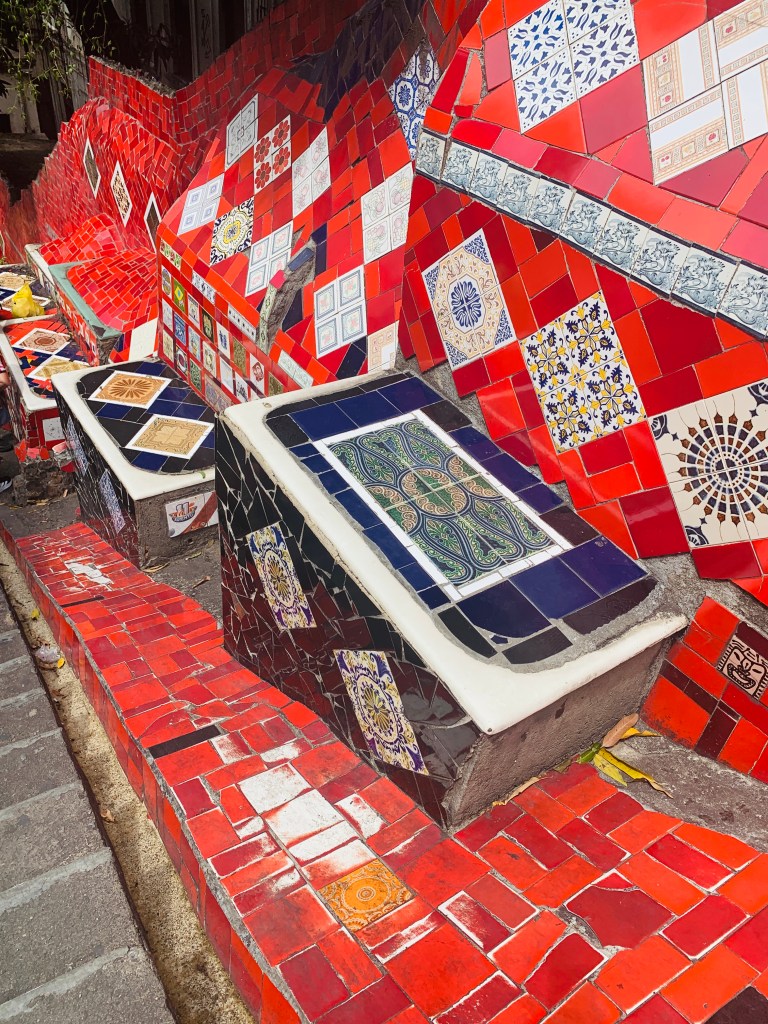The architectural wonder of the Metropolitan Cathedral of Saint Sebastian stood next in our path, showcasing a modern conical design that dramatically breaks the city’s skyline since its consecration in 1976. Following this, we soaked in the colorful ambiance of the Escadaria Selarón, vibrant steps that Chilean-born artist Jorge Selarón turned into a living canvas dedicated to the Brazilian people.