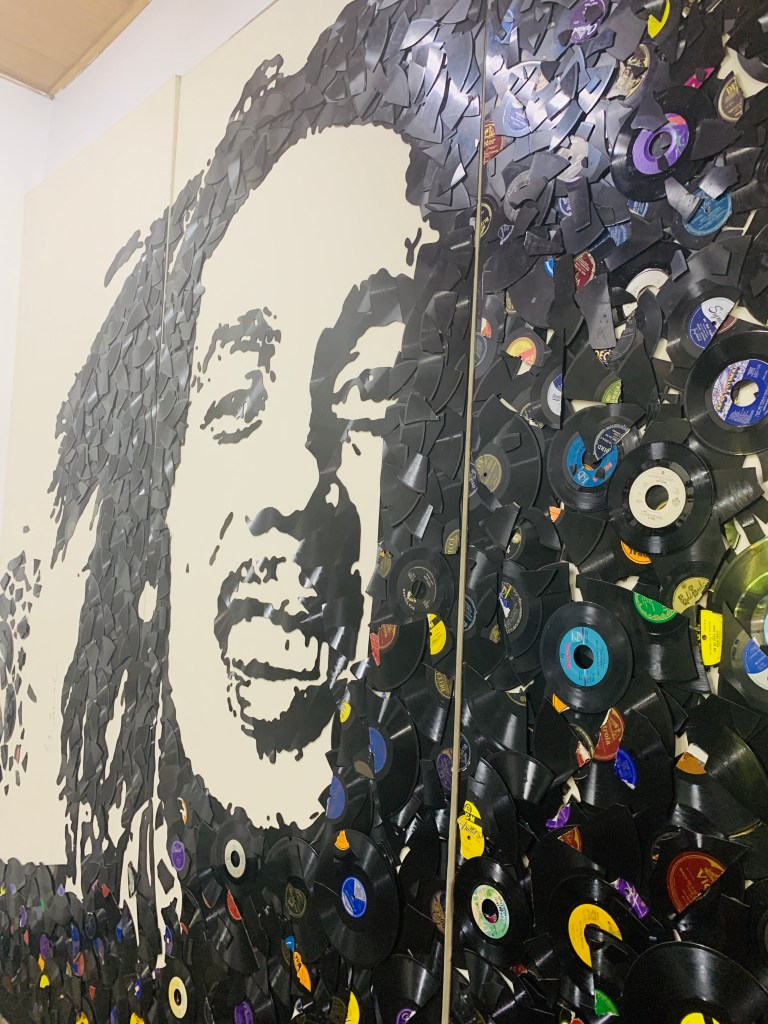 From there, I made my way to the Bob Marley Museum, located in the legendary musician’s former home at 56 Hope Road. The tour was led by Wilfred “Ricky Chaplin” Chambers, whose passion and personal connection to the music world added warmth and authenticity to the experience. Room by room, we explored Marley’s life and legacy—from handwritten lyrics to rare photos of family and concerts. The gallery walls were creatively decorated with real vinyl records, a nod to the analog age that helped launch reggae across the globe.