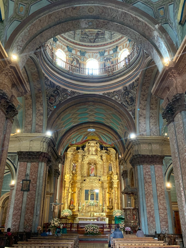 Just steps away, the Church of the Society of Jesus stood in dramatic contrast. Built in the 17th century, its interior is renowned for extensive gold leaf decoration, funded by wealth from colonial trade and labor. Nearby, the Basilica and Convent of San Francisco, one of the oldest religious complexes in South America, offered a quieter atmosphere. Construction began shortly after the Spanish conquest, and the complex reflects a blending of Indigenous and European artistic traditions.