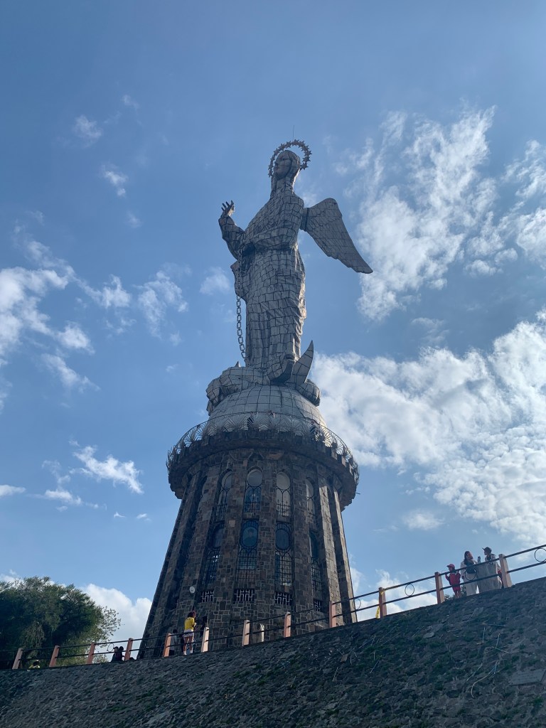 From the historic center, I made my way uphill to Parque Itchimbía, where the large Quito sign overlooked the city’s rooftops and valleys. The view made the city’s scale and elevation unmistakable. Later, I stood beneath the towering Virgin of the Panecillo, a modern statue inspired by the Book of Revelation, rising from a hill once sacred to Indigenous peoples long before Spanish arrival.