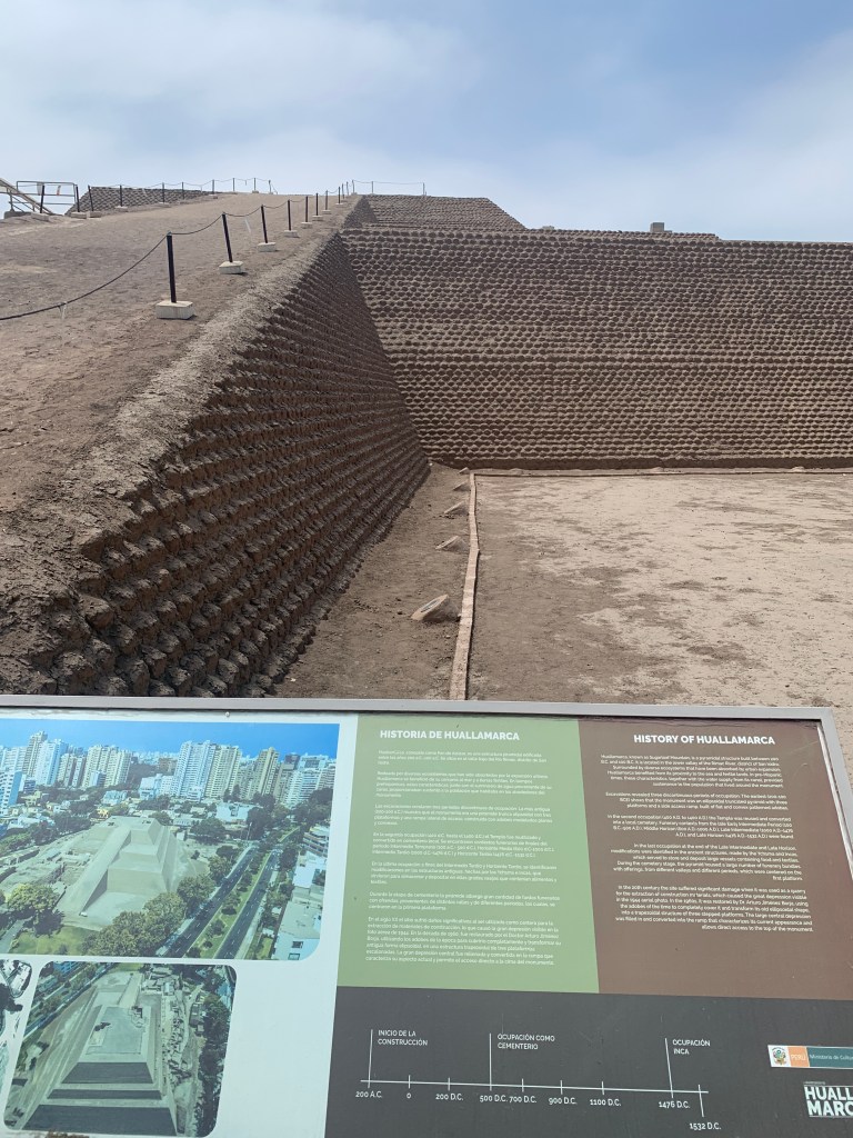 Lima unfolded as a city where ancient civilizations and colonial power coexist within the same blocks. I began at Huaca Huallamarca, a pre-Inca adobe pyramid rising unexpectedly among modern buildings. Dating back over a thousand years, the site reminds visitors that Lima was inhabited long before Spanish arrival. Standing at its base, it was striking to imagine ceremonies taking place here centuries before the city became a colonial capital.