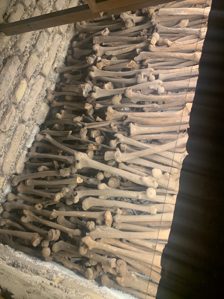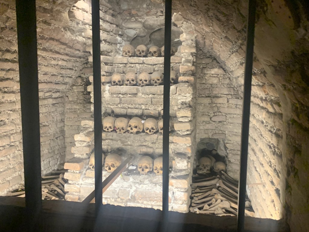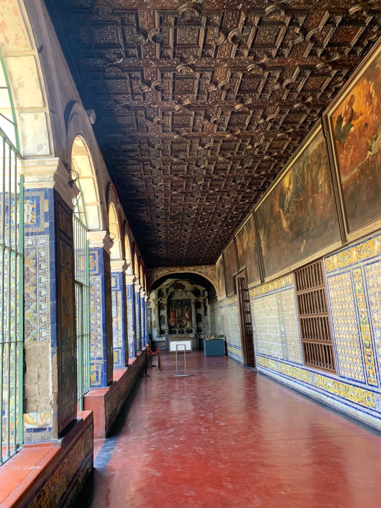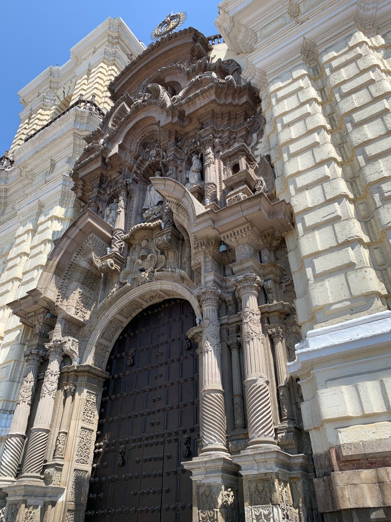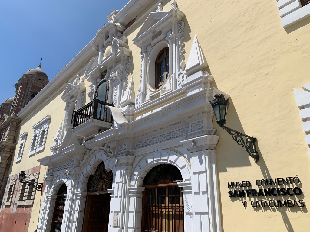 A visit to the Museo del Convento de San Francisco y Catacumbas brought a darker layer of history. Beneath the convent lie catacombs that once served as Lima’s main burial site during the colonial era. Thousands of bones are arranged with unsettling precision, reflecting both religious beliefs and limited burial space at the time. Above ground, the Basilica of Saint Francis and the adjacent Plaza Mayor de San Francisco stood calm and sunlit, masking what lies below.