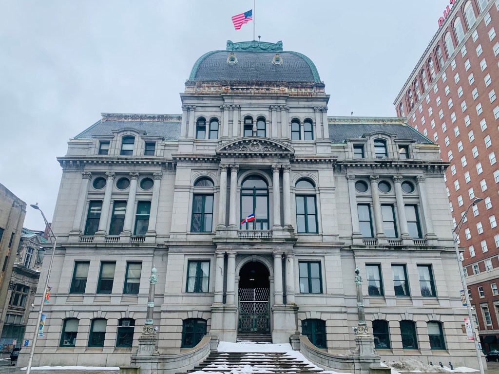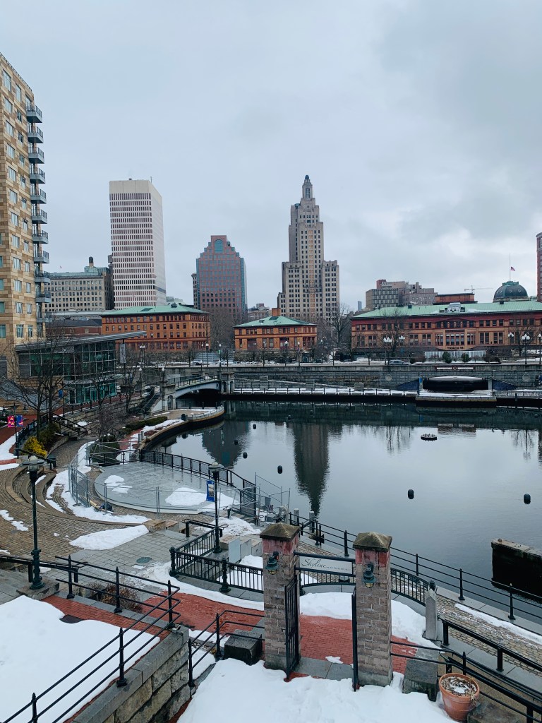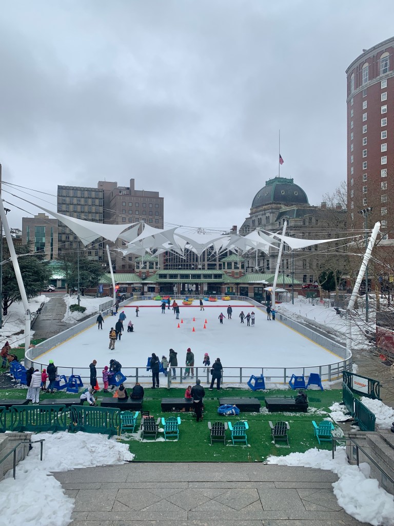 Snow settled gently across Providence, softening the brick facades and quieting the narrow streets. The city felt contemplative under a pale winter sky. I began near City Hall, its Romanesque arches rising above a dusting of white. Just a short walk away, the PVD Rink shimmered with skaters carving careful circles on the ice, laughter drifting into the cold air.