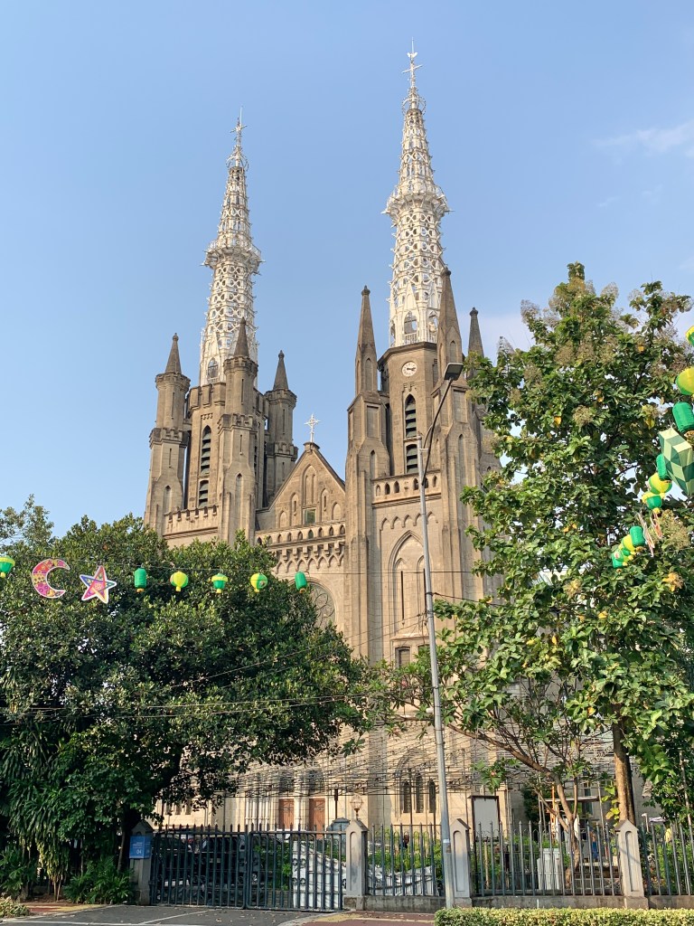 Inside the Istiqlal Mosque, the largest mosque in Southeast Asia, the atmosphere turned deeply reflective. Sitting on the carpet, still and grounded, created a rare pause in the city’s rhythm. Just across the street, the Church of Our Lady of the Assumption provided a contrasting but equally meaningful space. Built in 1901 during the Dutch colonial period, it reflects Jakarta’s diverse religious landscape, with both sites standing side by side in quiet coexistence.